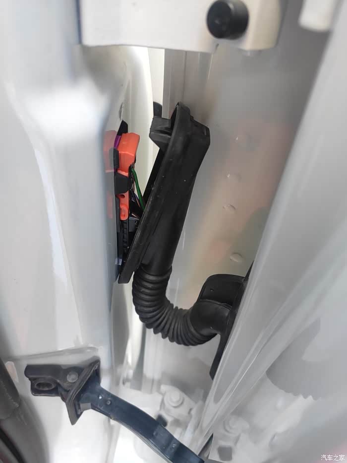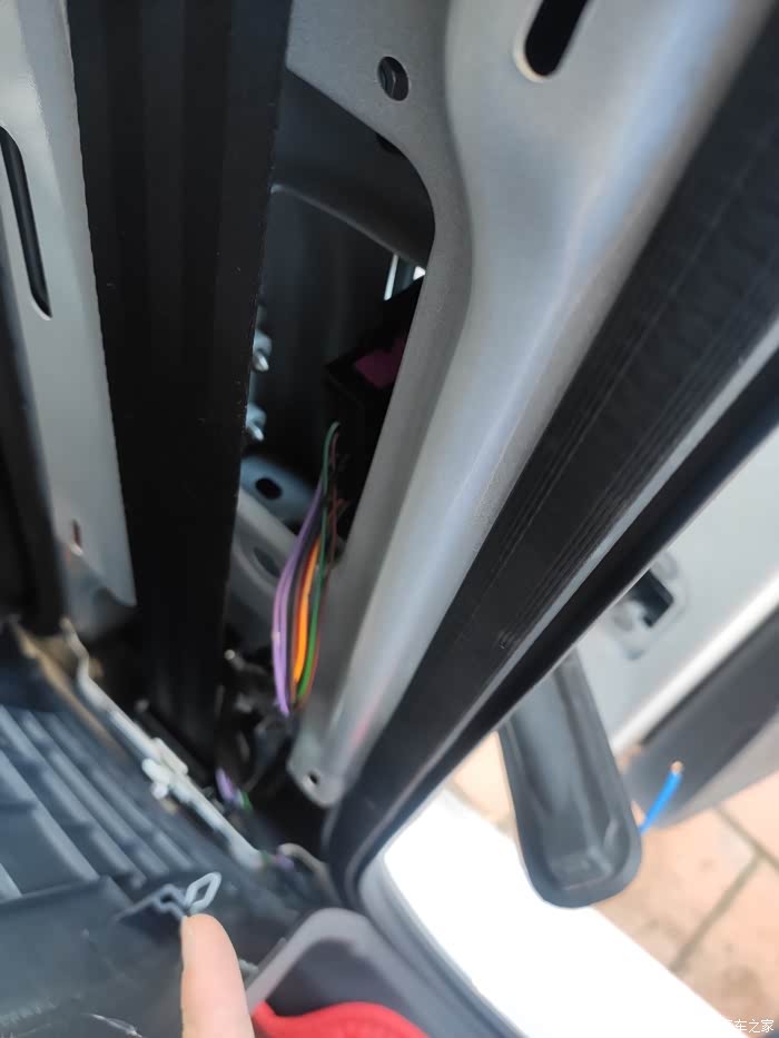 拆下后车门与车身的连接插头,然后用钢条穿线
