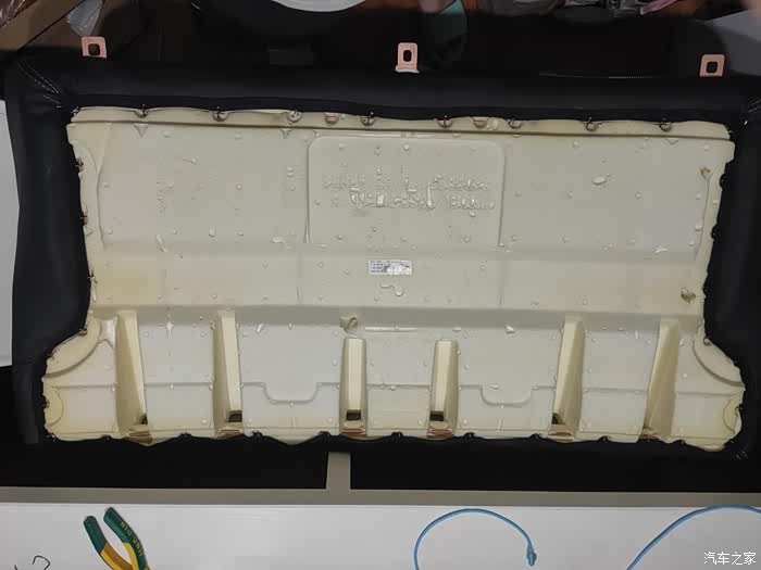 7、后备箱里面的后排靠背金属板用毛毡绒布粘贴