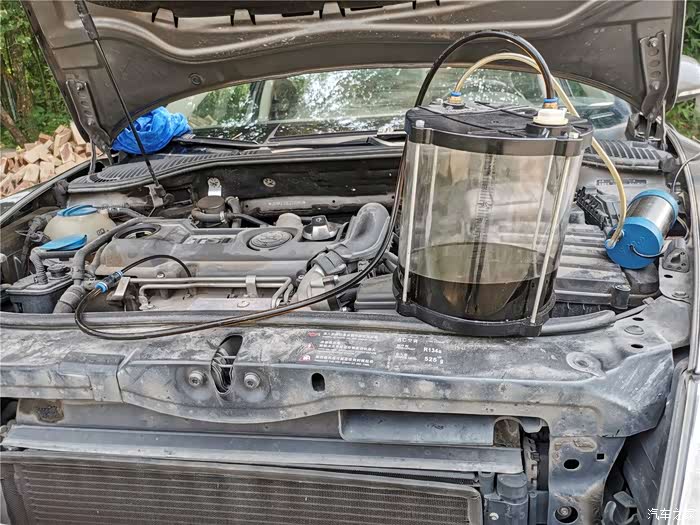 整个抽取过程持续了大约6分钟。然后就准备把新机油加进去了。