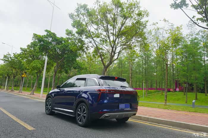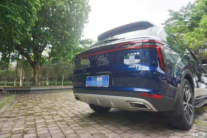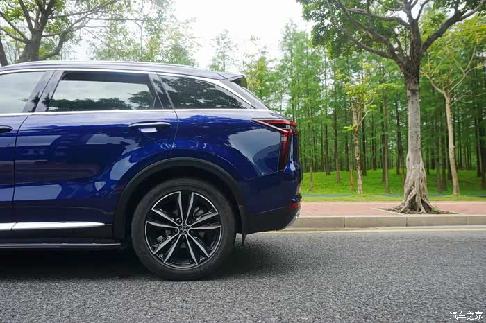 车尾比较圆润,看着很沉稳的感觉。采用贯穿式尾灯设计,两侧的灯组从侧面看还有一个回旋镖式的设计,辨识度很高。