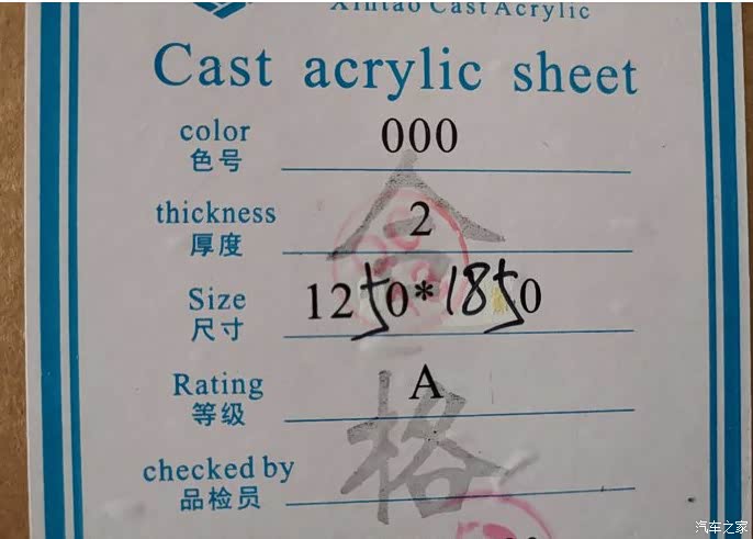 板材的尺寸为1250*1850,这是标签