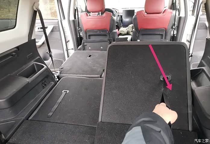 座椅放平调整,一般先从中排开始,下面是操作步骤