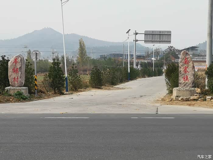 1个充电桩(2个大功率直流充电头)就在“南寨镇”3字的对面马路上。这里就是去郭亮的路口。