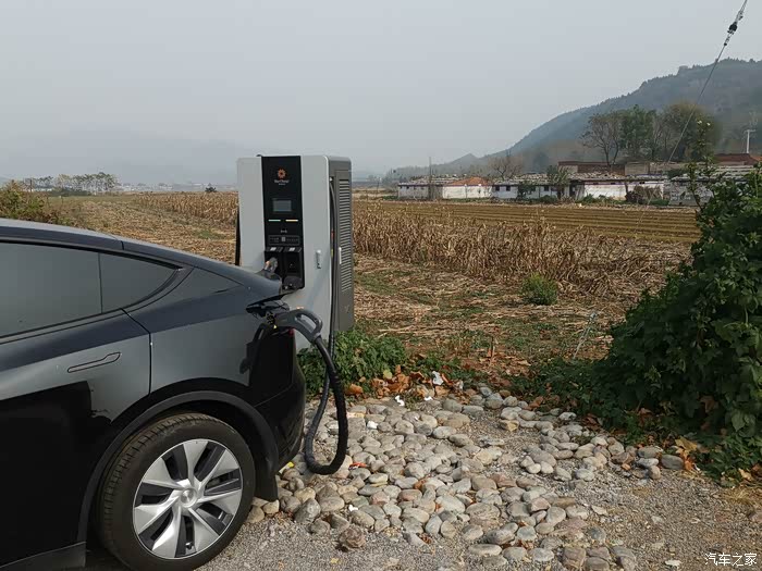 现在高速充电非常方便,这次河南之行经过浙江、安徽、江苏、河南,所到服务区都能找到快充。心想,河南那边电车没有南方多,充电应该不是很方便,事实却刚好相反。连去郭亮的一个玉米地旁还装着一个快充桩。