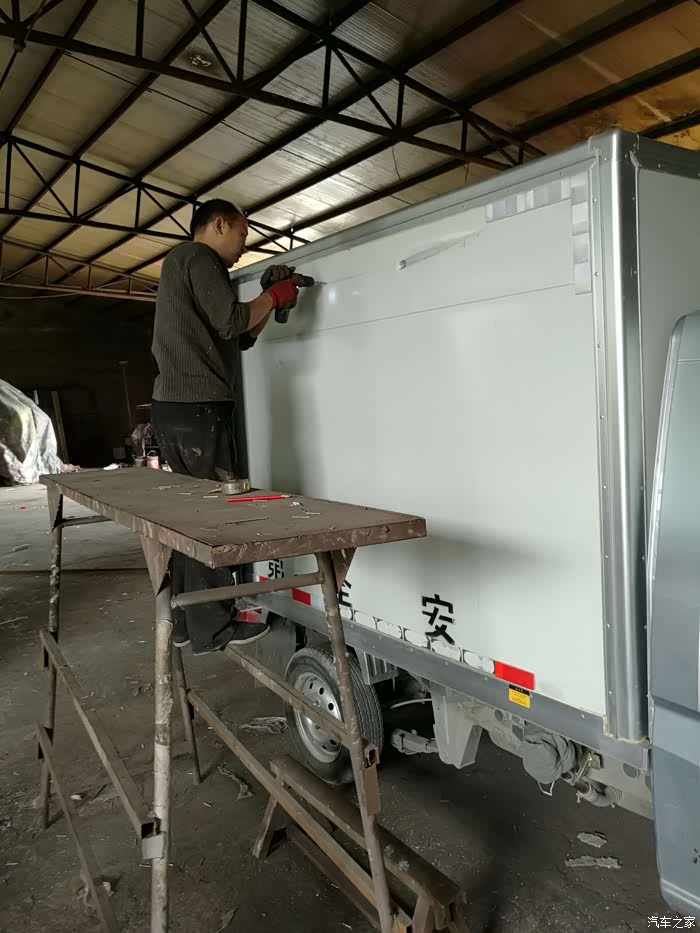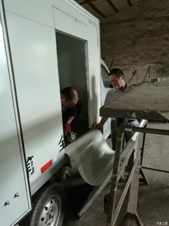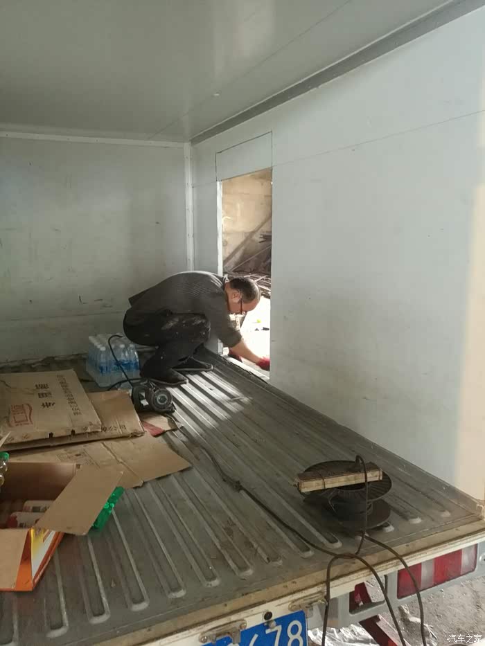 由于生意差,现在自己每天送货。1.2箱货没有中门,每天配送货物又是一整车,钻车厢太难受,终于忍不住了,联系了专门做车箱的厂家,掏了个中门。