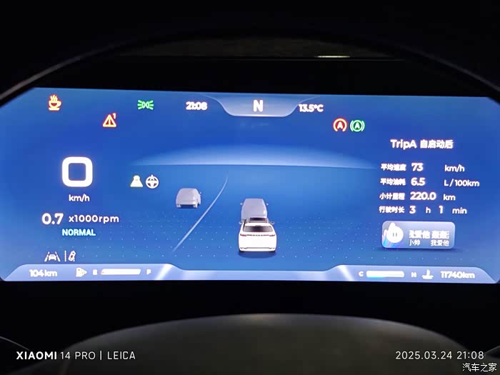 这是回来的油耗表现,同样是全程约220公里,油耗表现是6.5L/100KM,平均速度73KM/H,开了三小时