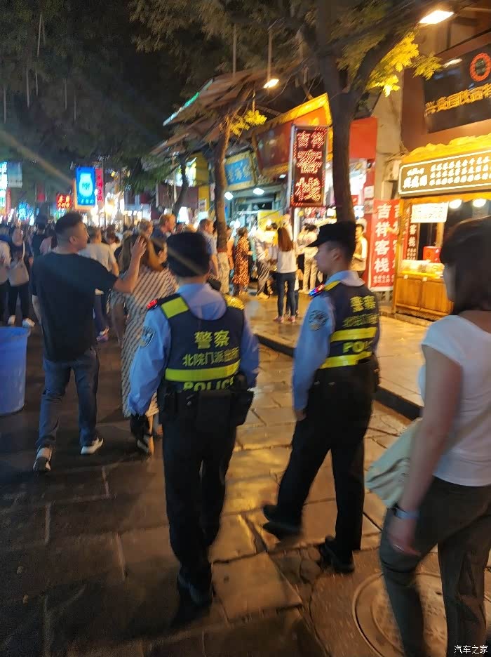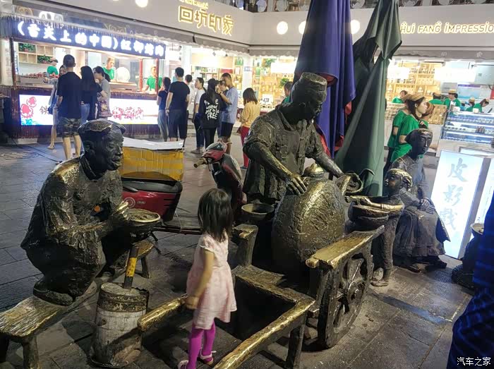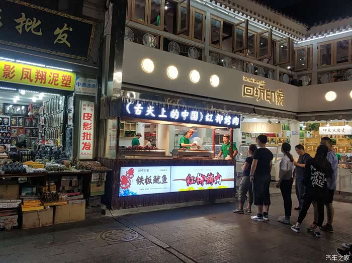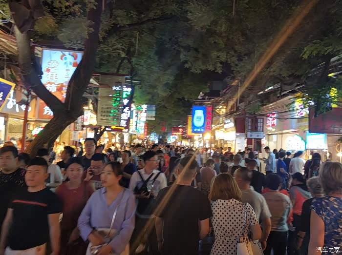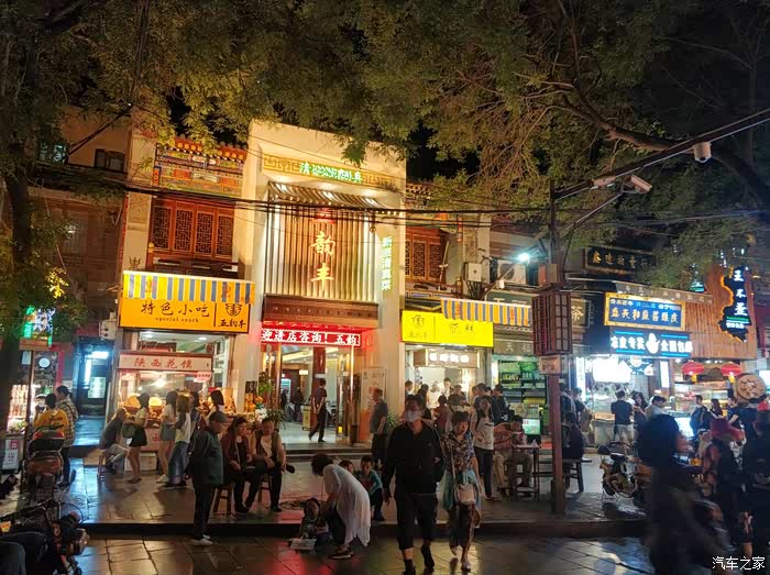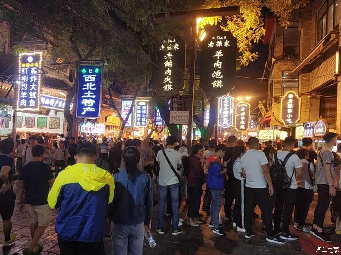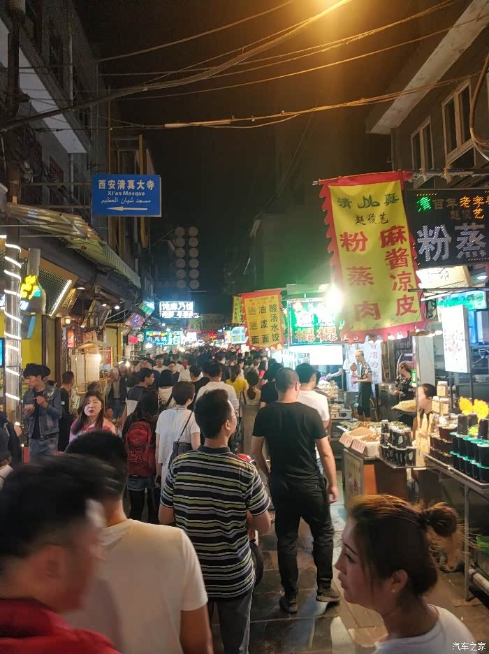 从明城墙下来后差不多下午七点,西安的天还很亮。自己的时间又不是很着急,所以决定步行从南门到回民街。我到一个城市,要是有时间还是很乐意在这个城市中走走,这样对于我来说好像可以更加深切的去感受这座城市。我一路走走停停,看看马路边川流的人群,看看一些小广场上出来散步的市民,还有一些维族人放起音乐,载歌载舞。到回民街的时候已经是晚上八点了,这个时候也是回民街特别热闹的时候,人流涌动。