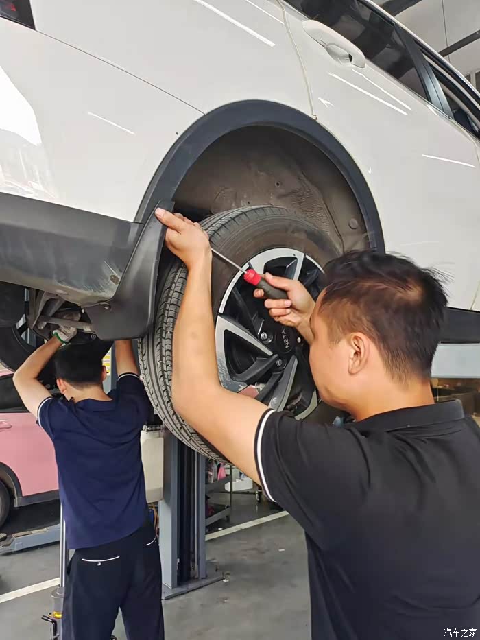 人家这款车是没有设置挡泥板的,前后车轮都没有。