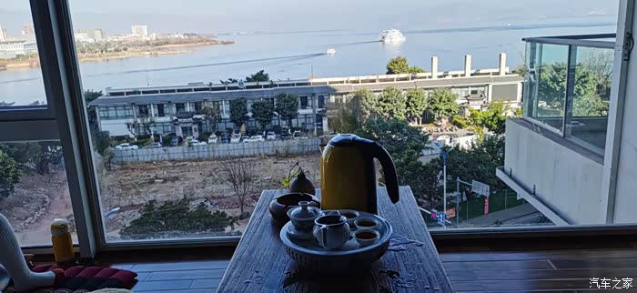 酒店是海景房,坐在屋里可以边喝茶边看到大理港的大船。
