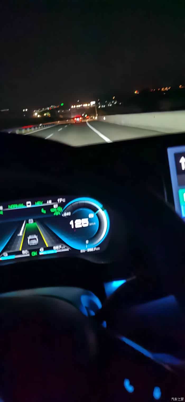到了晚上的时候,视线不好,车速稍微慢了点。路途中遇到了一位眼神好的大哥,直接超过了我,于是赶紧将ACC调整到125,一路当小弟跟随。
