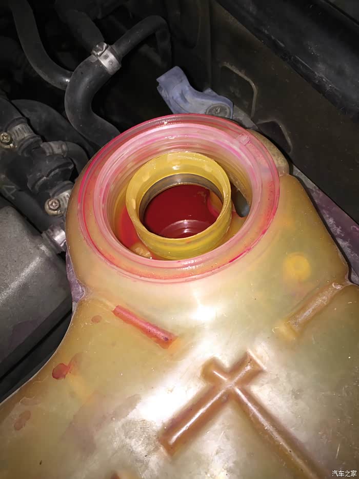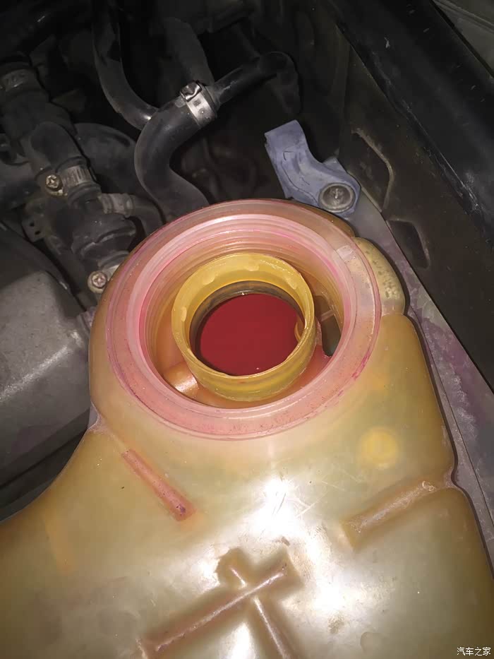下乡的途中稳定报警灯亮了,当时问了B5群里的车友,说看看是不是冷却液少了。