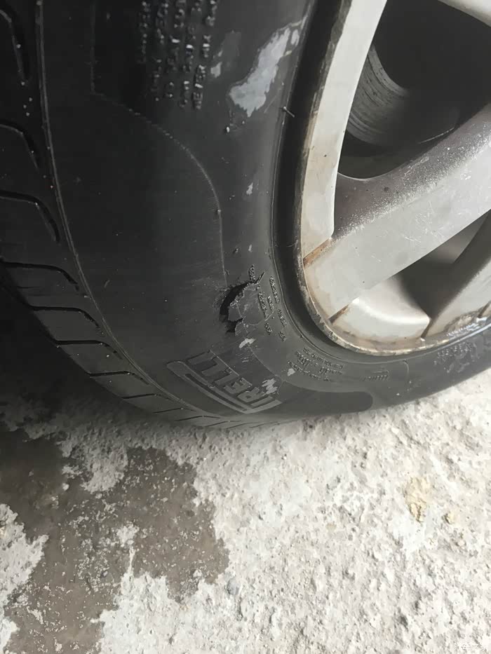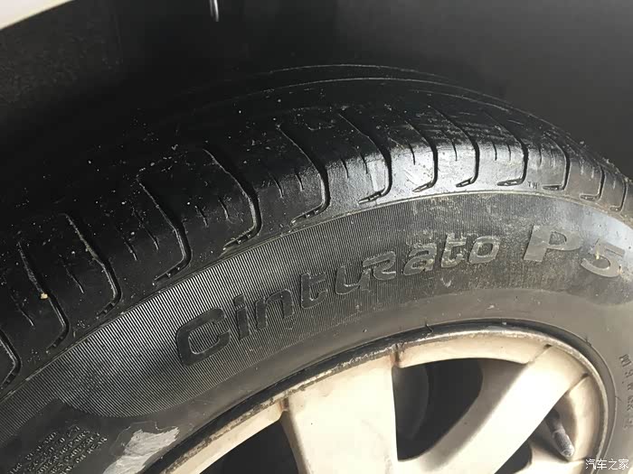 轮胎的规格 前轮两条是倍耐力的P1 后轮两条是倍耐力的P5 右后轮的胎被啃了一块皮,问了下汽修厂都说问题不大没关系。