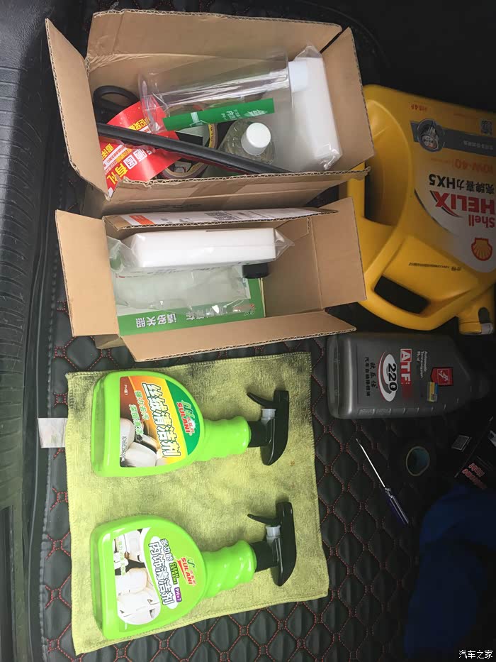 车子里全是各种配件机油。
