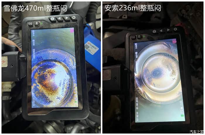 这两个图都是一缸活塞正面,一样的整瓶闷,一样的高速大长途,一样跑到油箱亮灯。