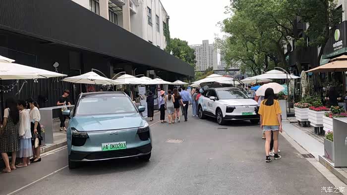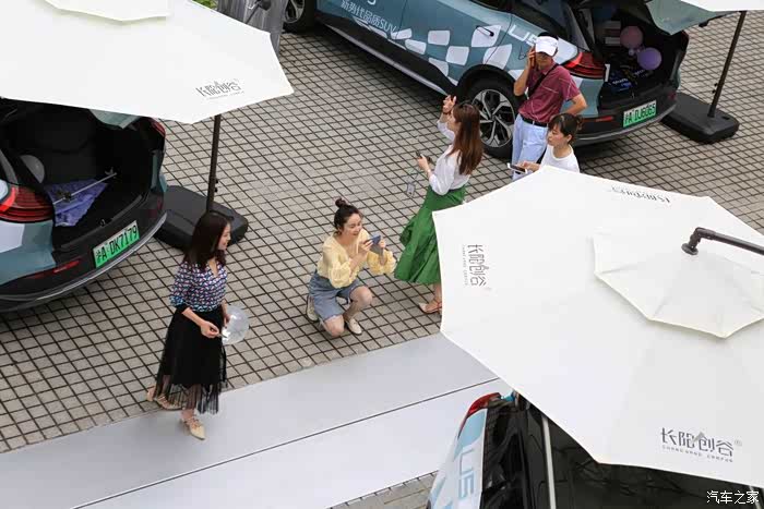扎堆在后备箱摆摊的都是爱驰U5,瞅了一下,车上空间确实挺大,还真适合随时随地练摊儿