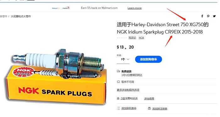 最后去亚马逊验证一下750 适配NGK CR9EIX