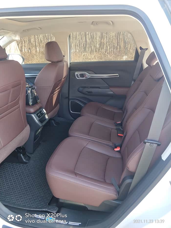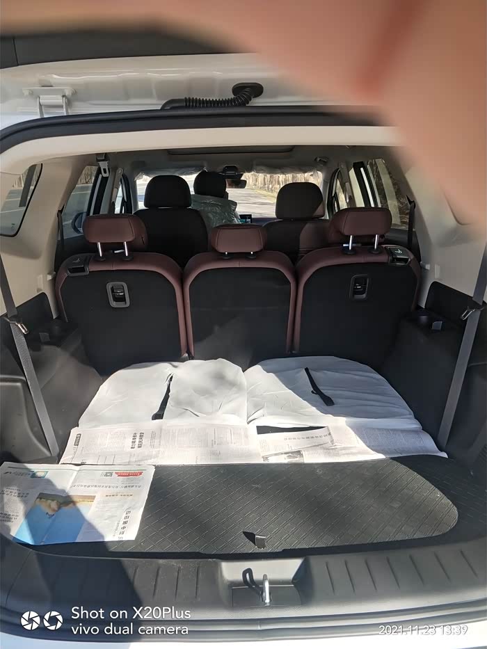 空间大七座放平后面两排完全可以当做一张床来使用,带完娃出行可以平躺在后面睡觉,通过天窗看星星还是很美丽的。座椅间的空间也非常充裕,之前开的是轿车座椅喜欢调的很低,换了豪越后调低了感觉很不>惯。