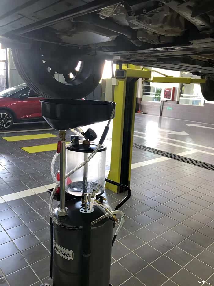 开始放废机油了,这个接废机油的罐罐还是挺干净的。