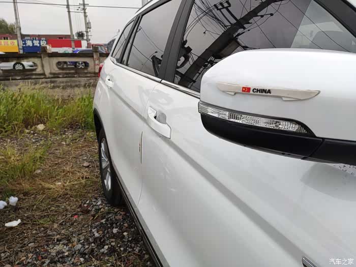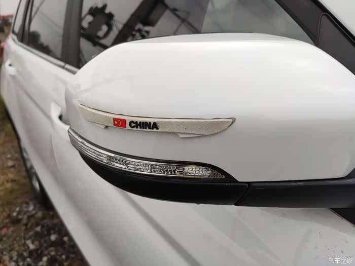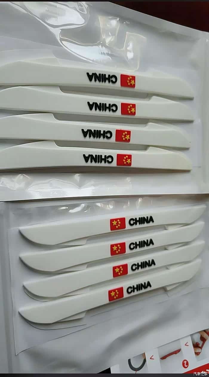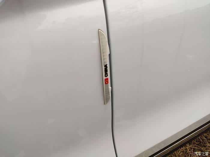 白色的防撞条和车身颜色一致,logo也都显示着我们的爱国情怀