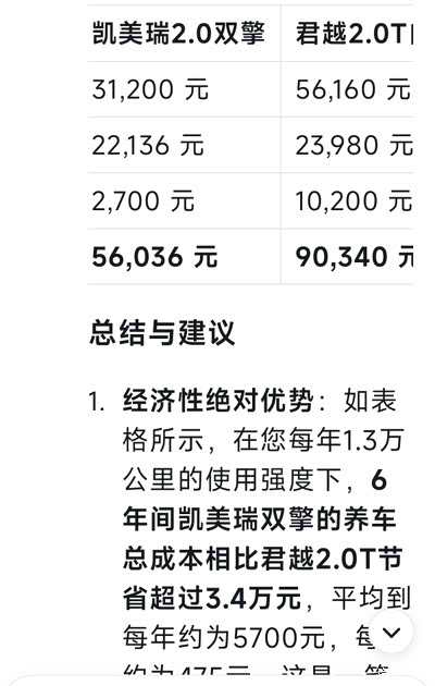 和君越白金落地差不多了(君越厂区省补算上落地16万内,到店还可谈)。但是君越担心后期养成费用较高,然后没有凯美瑞双擎省心。