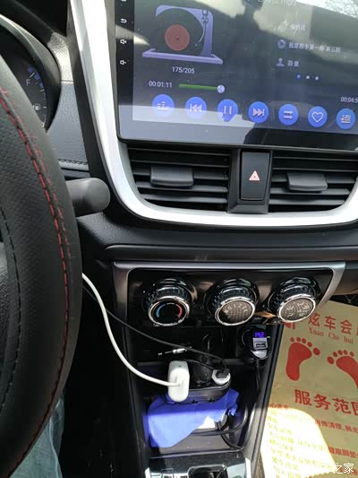 当然,目前市面上也有部分车型只有前排烟缸旁一个点烟器,对于这类车型如果要从点烟器取电的话,走一段明线就在所难免了。具体的方法就是从把线从迎宾踏板引出后直接放在副驾驶脚垫下,然后把插头插入点烟器即可。