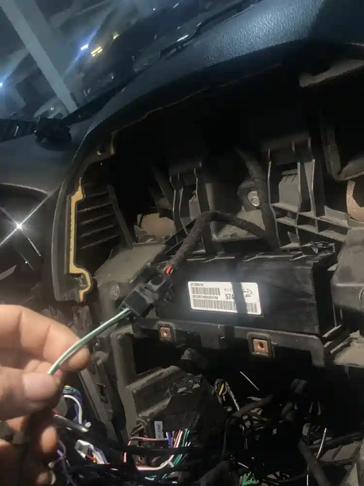 装完之后剩下两条线,一条小白线是中控cd多功能按键,这个换了竖屏了功能没有了接不接都可以。还有一条线是什么?之前是接旧车机的一个小方盒子