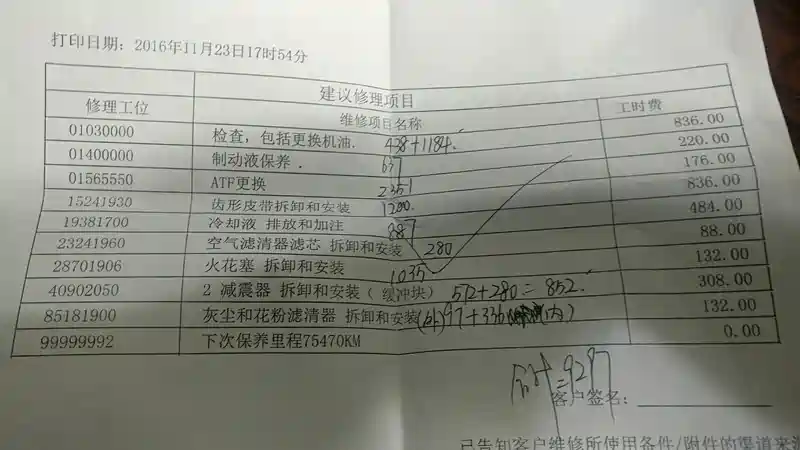 问 6万公里大保养,大家帮忙看看 删除 推荐精华 置顶 取消置顶 关闭回复 打开回复 推荐编辑 楼主禁言 移动帖子 重置头像 操作记录 不良xx 0浏览 · 2017-02-02 23:13 六万公里大保养,4s店给的价格表,大家帮忙看看价格怎么样 举报 打开汽车之家 阅读体验更好 相关问题 更多 问2022款,车载导航 0回答 问奥迪空调档位 0回答 问25款倒车底盘有异响 0回答 问手机屏幕映射 0回答 问转弯异响 0回答 问发动机哒哒哒异响 0回答 优质解答 跟着引擎躁起来 关禁闭 已屏蔽 甄不良 2017/02/03 11:14:29 发表在 10楼 14年五月的车 2.5那款 谢谢啦首先机油选用美孚金一号,三滤选择马勒,ATF选择原装的,防冻液选择车仆的,火花塞是博世的,皮带是伊娜的 机油是125*6,三滤是75 95 95 ATF是160*6 防冻液是95*2.火花塞是100*6.,皮带是200现在算下来是3000吧,其他的话,象征性的给一些工时费。 2017-02-03 17:43 回复 屏蔽此人 举报 删除 取消删除 禁言 重置头像 共有条对话 > 全部回复 只看楼主 西安车友4595026 关禁闭 已屏蔽 奥迪A6L 咋么有清洗节气门 喷油嘴 三元催化这三项呢? 2017-02-02 23:19 回复 沙发 屏蔽此人 举报 删除 取消删除 禁言 重置头像 共有条对话 > wong厂长 关禁闭 已屏蔽 奥迪A6L 合计9200多?我没看错吧 2017-02-02 23:29 回复 板凳 屏蔽此人 举报 删除 取消删除 禁言 重置头像 共有条对话 > 不良xx 楼主 关禁闭 已屏蔽 奥迪A6L 灰蓝色1 2017/02/02 23:19:39 发表在 沙发 咋么有清洗节气门 喷油嘴 三元催化这三项呢?不知道啊 今天说六万公里保养的9000多 让写了写项目 就这些 2017-02-02 23:58 回复 地板 举报 删除 取消删除 禁言 重置头像 共有条对话 > 不良xx 楼主 关禁闭 已屏蔽 奥迪A6L player2016 2017/02/02 23:29:24 发表在 板凳 合计9200多?我没看错吧对 六万公里保养 感觉有点贵,如果去外面保养的话 有什么注意的吗 求教 2017-02-02 23:59 回复 举报 删除 取消删除 禁言 重置头像 共有条对话 > 老农民兄弟 关禁闭 已屏蔽 君越 火花塞能用换他干嘛 2017-02-03 08:51 回复 屏蔽此人 举报 删除 取消删除 禁言 重置头像 共有条对话 > 跟着引擎躁起来 关禁闭 已屏蔽 减震器缓冲块的拆卸和安装,这个是没有必要的,其他的都是60000公里应该换的,不过这价格有些离谱啊,方便告诉我排量和年限么?我可以帮你算一下 2017-02-03 08:57 回复 屏蔽此人 举报 删除 取消删除 禁言 重置头像 共有条对话 > 武汉车友5932188 关禁闭 已屏蔽 翼神 京东买配件 外面保养 都用不了一半价格 前提你过了质保期 2017-02-03 09:14 回复 屏蔽此人 举报 删除 取消删除 禁言 重置头像 共有条对话 > 天津车友0265332 关禁闭 已屏蔽 外面搞,3000元一大关了 2017-02-03 09:17 回复 屏蔽此人 举报 删除 取消删除 禁言 重置头像 共有条对话 > 五月的肖邦 关禁闭 已屏蔽 奥迪A6L 如果车子已经过了质保,外面保养4000左右。 2017-02-03 10:43 回复 屏蔽此人 举报 删除 取消删除 禁言 重置头像 共有条对话 > 不良xx 楼主 关禁闭 已屏蔽 奥迪A6L 跟着引擎躁起来 2017/02/03 08:57:29 发表在 6楼 减震器缓冲块的拆卸和安装,这个是没有必要的,其他的都是60000公里应该换的,不过这价格有些离谱啊,方便告诉我排量和年限么?我可以帮你算一下14年五月的车 2.5那款 谢谢啦 2017-02-03 11:14 回复 举报 删除 取消删除 禁言 重置头像 共有条对话 > 不良xx 楼主 关禁闭 已屏蔽 奥迪A6L 老农民兄弟 2017/02/03 08:51:49 发表在 5楼 火花塞能用换他干嘛不知道。。 2017-02-03 11:14 回复 举报 删除 取消删除 禁言 重置头像 共有条对话 > 不良xx 楼主 关禁闭 已屏蔽 奥迪A6L kiven21ch 2017/02/03 10:43:30 发表在 9楼 如果车子已经过了质保,外面保养4000左右。哦哦 好的 2017-02-03 11:15 回复 举报 删除 取消删除 禁言 重置头像 共有条对话 > 不良xx 楼主 关禁闭 已屏蔽 奥迪A6L 真话不全说 2017/02/03 09:17:09 发表在 8楼 外面搞,3000元一大关了好的 谢谢 2017-02-03 11:15 回复 举报 删除 取消删除 禁言 重置头像 共有条对话 > gf731 关禁闭 已屏蔽 防冻液不要换,2.5的不用换皮带。 2017-02-03 16:12 回复 屏蔽此人 举报 删除 取消删除 禁言 重置头像 共有条对话 > 跟着引擎躁起来 关禁闭 已屏蔽 甄不良 2017/02/03 11:14:29 发表在 10楼 14年五月的车 2.5那款 谢谢啦首先机油选用美孚金一号,三滤选择马勒,ATF选择原装的,防冻液选择车仆的,火花塞是博世的,皮带是伊娜的 机油是125*6,三滤是75 95 95 ATF是160*6 防冻液是95*2.火花塞是100*6.,皮带是200现在算下来是3000吧,其他的话,象征性的给一些工时费。 2017-02-03 17:43 回复 屏蔽此人 举报 删除 取消删除 禁言 重置头像 共有条对话 > pbh1232016 关禁闭 已屏蔽 冷却液没必要换,少了直接添加就可以了,4s店坑你啊,这些保养项目配件自己买,让外面的汽车维修店搞,便宜很多 2017-02-03 20:16 回复 屏蔽此人 举报 删除 取消删除 禁言 重置头像 共有条对话 > 狂奔的蜗牛622 关禁闭 已屏蔽 火花塞要是没换过可以换下,要是换过就不需要换,变速箱油可以再缓缓,不差钱也可以换了,外面不过3000全搞定,其他都是骗钱的玩意 2017-02-03 22:31 回复 屏蔽此人 举报 删除 取消删除 禁言 重置头像 共有条对话 > 不良xx 楼主 关禁闭 已屏蔽 奥迪A6L pbh1232016 2017/02/03 20:16:14 发表在 16楼 冷却液没必要换,少了直接添加就可以了,4s店坑你啊,这些保养项目配件自己买,让外面的汽车维修店搞,便宜很多哦哦 谢谢 2017-02-04 08:24 回复 举报 删除 取消删除 禁言 重