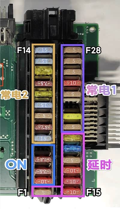 手套箱底下有个保险盒,上面共有28个保险,看看其中的6号保险(F6)。