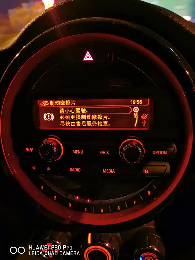 还是刹车片报警 新迷你刹车片使用寿命很短 2W 左右 而且还有偏磨现象 加剧了磨损 如果驾驶习惯不好直接影响刹车片使用寿命