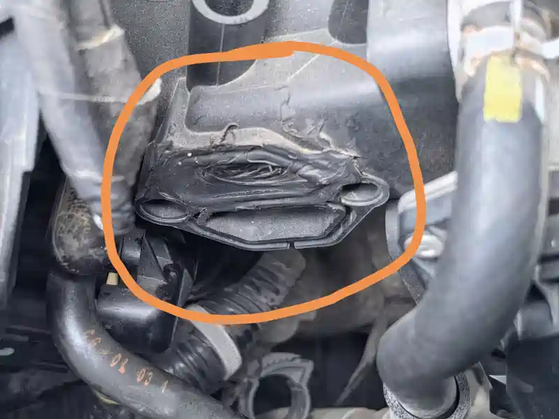 各位车友大神,哪位知道这个位于节气门旁边的零部件是啥?想更换掉。我是个二手11款2.3,这个地方打过胶,现在有条裂缝会呲呲的漏气,可能导致发动机进气不足有抖动。