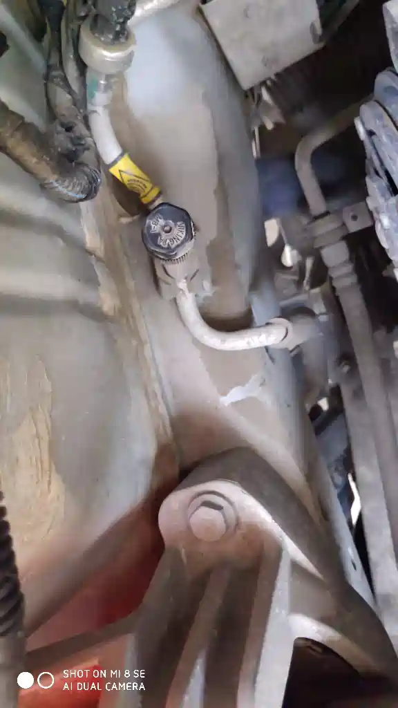 昨天洗车今天发现黑色螺丝底下有点湿,用手拧紧了下这个螺丝,不知道啥东西?能拧吗?