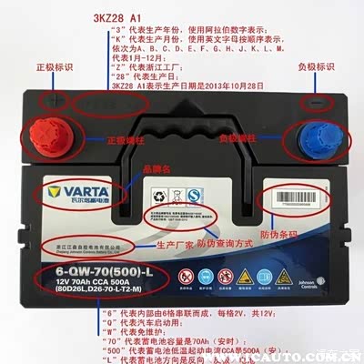 1.菲翔原车电瓶为12V黑标瓦尔塔(L2-400),具体型号为6-QW-60(540)-L;额定容量60Ah,额定冷启动电流值540A(EN),该电瓶低温性能、蓄电功能及充电能力均较差;