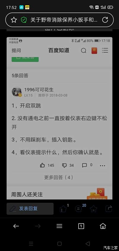 问 野帝显示立即进行车况检查 删除 推荐精华 置顶 取消置顶 关闭回复 打开回复 推荐编辑 楼主禁言 移动帖子 重置头像 操作记录 zjcxtjh 0浏览 · 2022-07-22 07:04· 发布于浙江 每次启动车辆前仪表盘显示立即进行车况检查,问问各位朋友如何消除。 举报 打开汽车之家 阅读体验更好 相关问题 更多 问野帝换方盒子电车 0回答 问备胎可以取掉吗 0回答 问野帝车机 0回答 问更换LED灯报警故障 0回答 问这是什么漏水了 0回答 问关于防火墙更换后效果 0回答 优质解答 南石YETI 关禁闭 已屏蔽 Yeti 2022-07-22 09:52 来自河北 回复 屏蔽此人 举报 删除 取消删除 禁言 重置头像 共有条对话 > 全部回复 只看楼主 凯普狄诺607 关禁闭 已屏蔽 雪铁龙C5 通电后车辆会有一个自检程序,当打火几秒种后自检通过的就会自动熄灭,没有熄灭的一般就有两个标志,一个是手刹提示,一个是安全带提示,如果其他的没有熄灭,表示自检没有通过,就需要到4S店用电脑检测故障原因并排除故障码。 2022-07-22 07:06 来自上海 回复 沙发 屏蔽此人 举报 删除 取消删除 禁言 重置头像 共有条对话 > 层层传导压力Toogy 关禁闭 已屏蔽 1.就是到设置的保养时间了,清一下保养提示就可以。2.保养时间有两个,一个是车况检查,这个是按时间来的,启始时间是上次保养归零时间,一般是一年,一个是油水更换,是根据上次保养后再跑的公里数来的。有的车是5000,有的是1万,这个可以自己设置。哪个保养期限到了就系统就会有提示。3.保养完了两个都要清,只清一个对另一个没用。清除方法在论坛一搜一大堆。记得看清楚是清保养时间还是保养里程! 2022-07-22 08:45 来自内蒙古 回复 板凳 屏蔽此人 举报 删除 取消删除 禁言 重置头像 共有条对话 > liugaohu825 关禁闭 已屏蔽 Yeti 百度搜 2022-07-22 08:56 来自陕西 回复 地板 屏蔽此人 举报 删除 取消删除 禁言 重置头像 共有条对话 > 南石YETI 关禁闭 已屏蔽 Yeti 2022-07-22 09:52 来自河北 回复 屏蔽此人 举报 删除 取消删除 禁言 重置头像 共有条对话 > 还想在主楼增加内容?点击续写主楼内容 登录 参与更多互动 发表回复 打开App,查看更多评论 首 页 上一页 下一页 末 页 跳 转 取 消 还想在主楼增加内容?点击续写主楼内容 登录 参与更多互动 系统故障 发表回复 图片最多上传9张 微信好友 微信朋友圈 新浪微博 QQ好友 QQ空间 取消 相关推荐 加载中