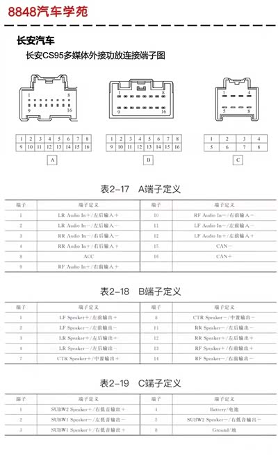 问 CS95娱乐主机和外置功放的接线定义,谁知道怎么接?求教大神! 删除 推荐精华 置顶 取消置顶 关闭回复 打开回复 推荐编辑 楼主禁言 移动帖子 重置头像 操作记录 成都车友6616525 0浏览 · 2024-11-28 22:58· 发布于四川 请教cs95娱乐主机和外置功放的接线定义,网上到处都收不到。 举报 打开汽车之家 阅读体验更好 相关问题 更多 问谁知道95微信群 0回答 问火花塞?? 0回答 问密封 0回答 问氧传感器?? 0回答 问车机系统升级出现问题 0回答 问机油 0回答 全部回复 只看楼主 夜静下来SLC 关禁闭 已屏蔽 绅宝D50 长安CS95娱乐主机和外置功放的接线定义及连接方法对于确保音响系统的正常运行至关重要。以下是根据搜索结果整理的相关信息:接线定义CAN+:红色线,接图片插头上面左边第一条线。CAN-:黑色线,接图片插头下面左边第一条线。连接方法电源线:最好选用三芯电缆,双层胶皮保护。正极接到主机的供电正极线,地线也一样。另外一条接到主机控制输出REM或者ACC。喇叭线:使用双头莲花线连接主机和功放。注意事项确保所有线路连接牢固,避免短路,以免造成设备损坏或安全隐患。在进行任何接线操作前,请确保车辆熄火并断开电源。如果不确定如何操作,建议寻求专业人员的帮助。通过遵循上述步骤和注意事项,您可以确保长安CS95娱乐主机和外置功放的正确连接,从而获得最佳的音响体验。如果您在连接过程中遇到任何问题,建议咨询专业的汽车音响技术人员或服务中心。 2024-11-28 23:26 来自江苏 回复 沙发 屏蔽此人 举报 删除 取消删除 禁言 重置头像 共有条对话 > 赣州车友9369075 关禁闭 已屏蔽 我买了下面那个功放,现在装在55p车上用 2025-04-02 05:03 来自江西 回复 板凳 屏蔽此人 举报 删除 取消删除 禁言 重置头像 共有条对话 > 赣州车友9369075 关禁闭 已屏蔽 这个是尾插定义图 2025-04-02 05:04 来自江西 回复 地板 屏蔽此人 举报 删除 取消删除 禁言 重置头像 共有条对话 > 还想在主楼增加内容?点击续写主楼内容 登录 参与更多互动 发表回复 打开App,查看更多评论 首 页 上一页 下一页 末 页 跳 转 取 消 还想在主楼增加内容?点击续写主楼内容 登录 参与更多互动 系统故障 发表回复 图片最多上传9张 微信好友 微信朋友圈 新浪微博 QQ好友 QQ空间 取消 相关推荐 加载中