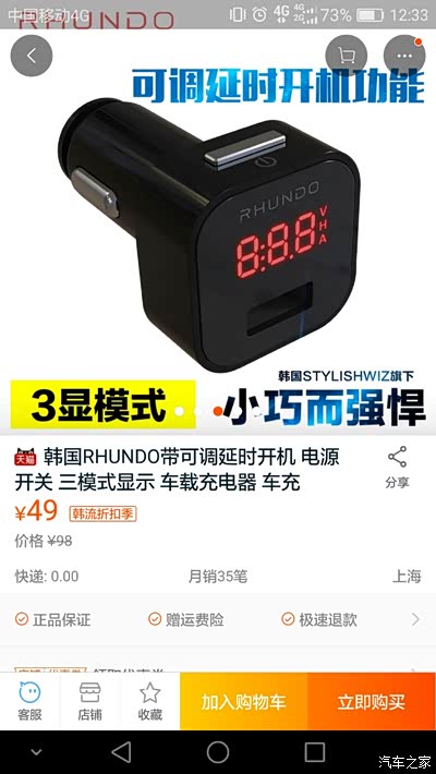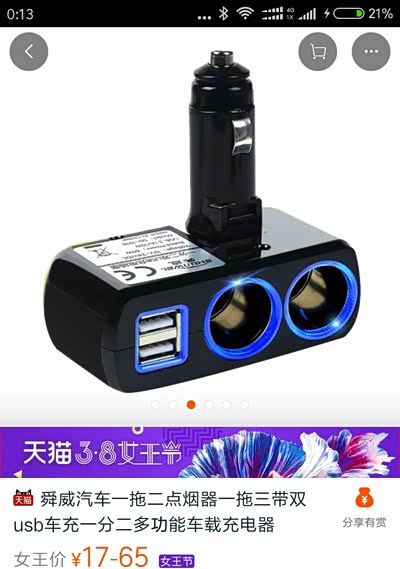 品胜点烟器一分二加一个USB,飞毛腿车充带电压显示。神组合55搞定![]()