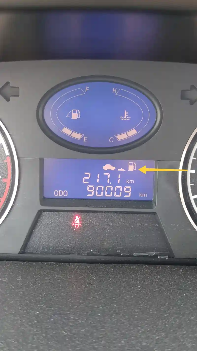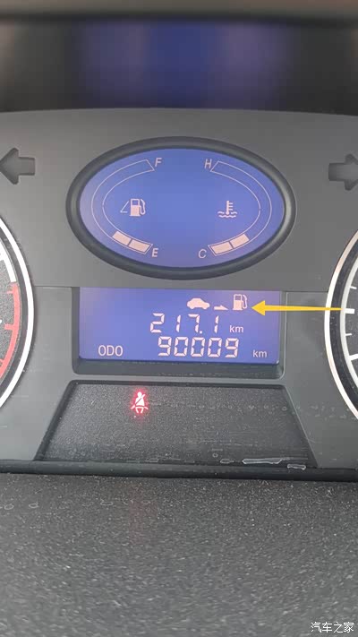 箭头提示加油!并不是别的意思。续航里程的页面没有显示出来。如果显示出来,续航里程就更直观一点。也就是说,仪表上显示的续航里程在这个续航里程之前就要去加油。