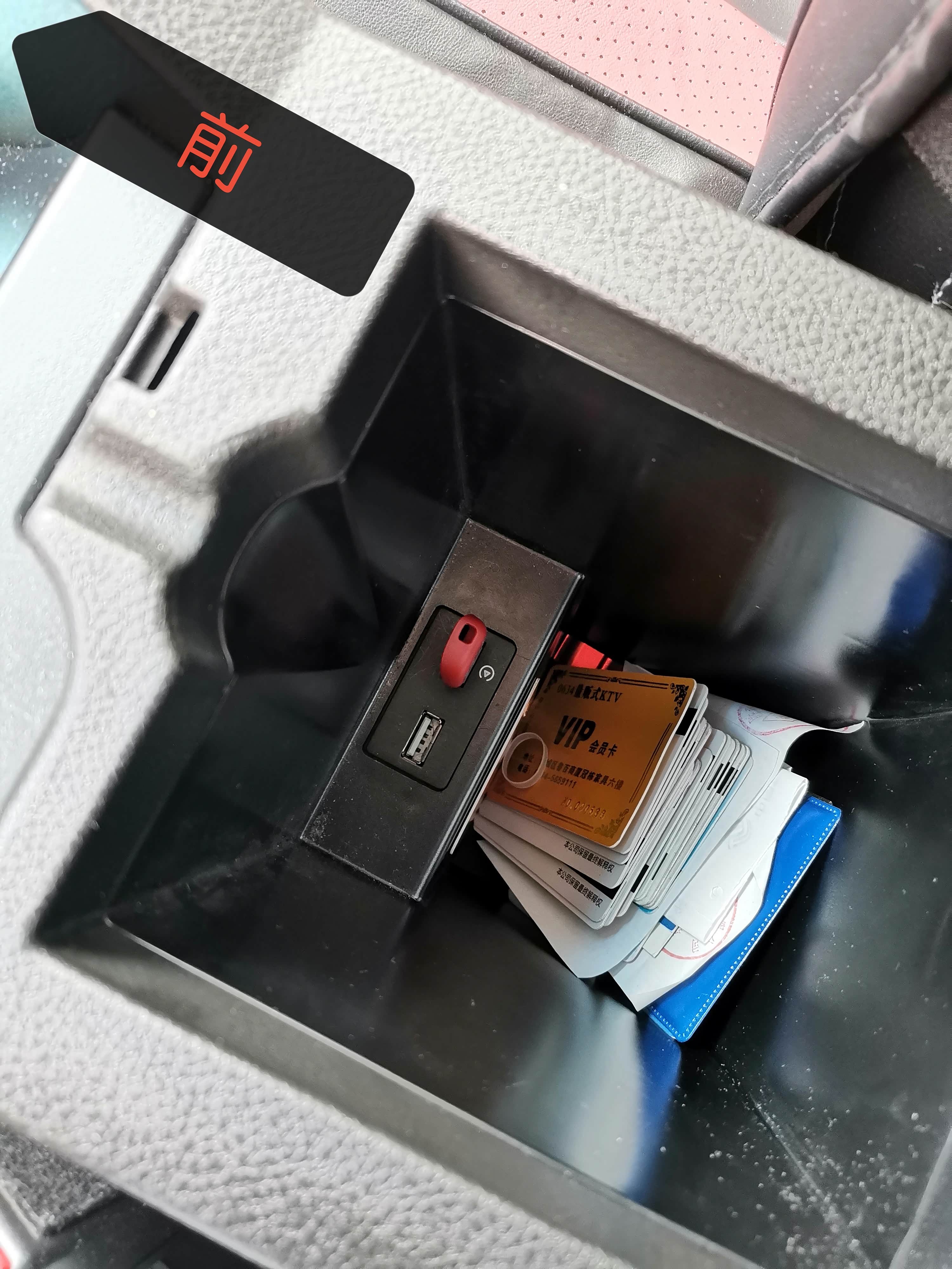 扶手箱里两个U***接口。右侧这个有多媒体的图案,应该是插U盘专用。那左边这个是2?