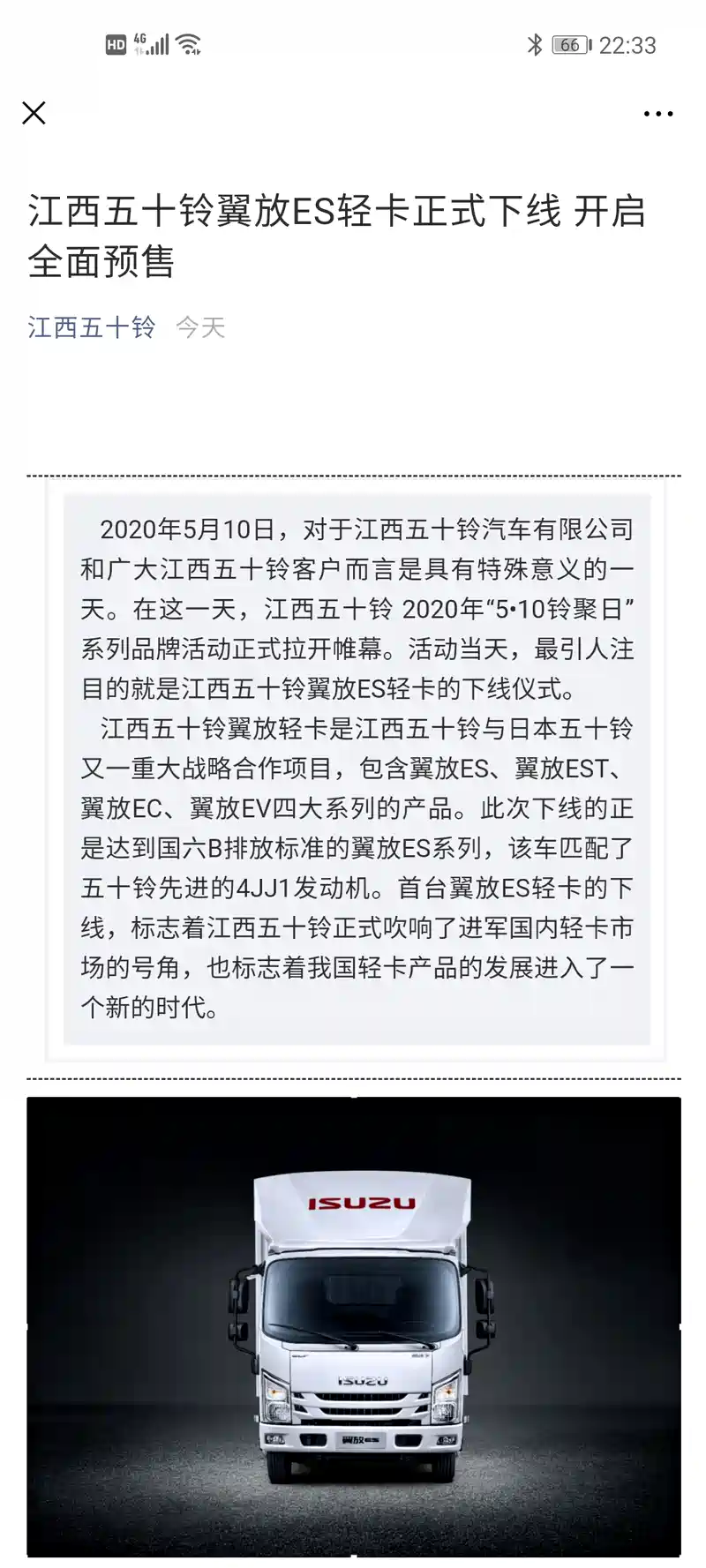 江五官方微信公众号推送的,4JJ1国六B!