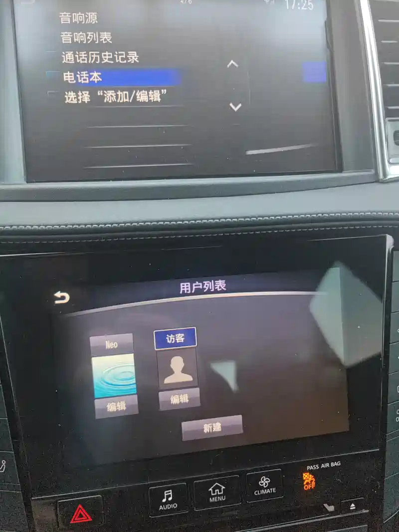 这个是英菲尼迪的一个比较有趣的配置,两把钥匙可以设置不同的用户,当用不同钥匙启动车辆时车机会显示不同的用户,好像是还可以记忆不同用户的驾驶方式,也就是说每把钥匙的发动机与变速箱的调教是不同的,但是差别不会差太多