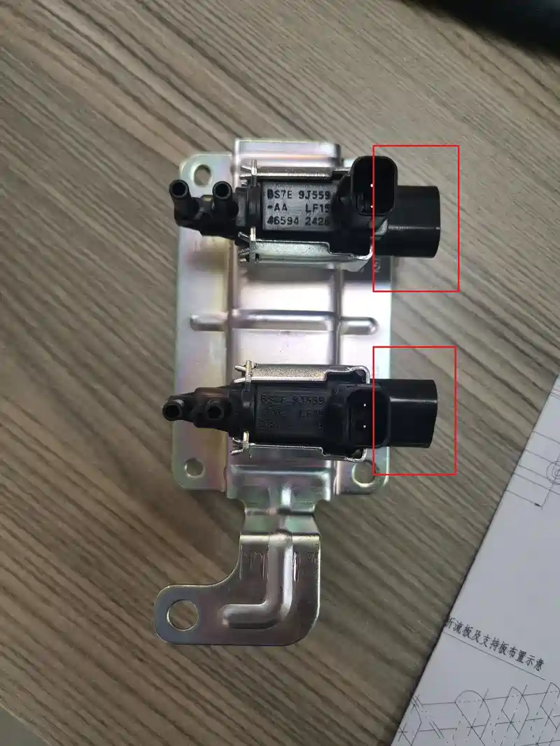 在网上买的台湾品牌电磁阀,右侧两个小黑东西能拔下来,原车的我试了下拔不下来(真空原因?),请车友帮忙看下是否为正品?万用表测了,两个都是三十多欧。