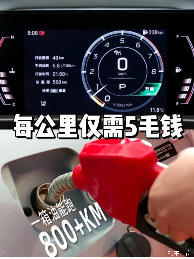 再说说油耗,买的时候销售说是百公里6.8左右,但是我实际开下来没有那么高,百公里大约是在6.5这样,折算下来每公里就5毛多,喝92#汽油就行,平时市区通勤、周末带全家周边游,油费一点不心疼。不像纯电车,我总担心续航焦虑和找不到充电桩,油车还是目前更稳妥的选择。