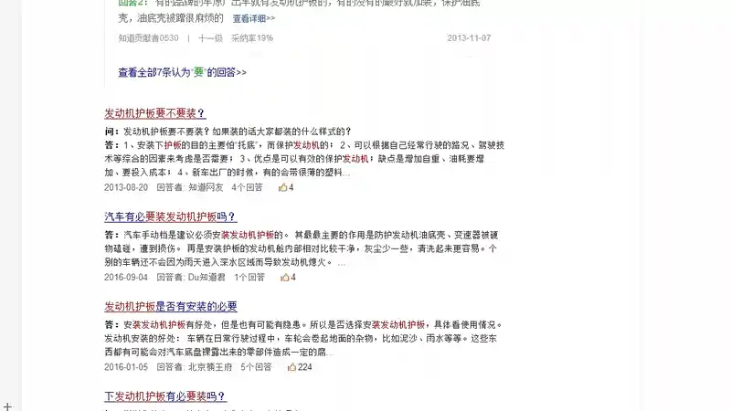 1:如果你经常走烂路,或者山区的话,可以装一个,如果总是市区或者市郊,可以不用装。有的车子出厂本身就带有发动机底护板,但是主要作用是隔音和挡泥水的作用,对发动机没有防护功能。