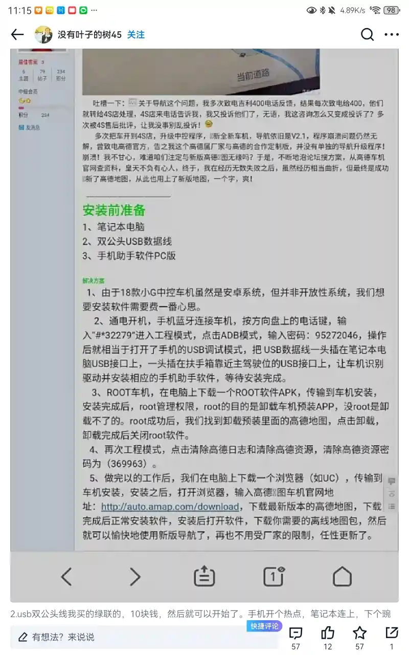 问 18款博越车机求安转第三方软件办法 删除 推荐精华 置顶 取消置顶 关闭回复 打开回复 推荐编辑 楼主禁言 移动帖子 重置头像 操作记录 Xqy249 0浏览 · 2024-10-24 13:44· 发布于四川 18款博越智慧,按照网上的攻略一步不差的操作,还是没办法安装第三方软件,既没有U***安装APK按钮,adb模式输入密码后连接电脑也没任何反应,求大神指点 举报 打开汽车之家 阅读体验更好 相关问题 更多 问关于吉利博越车尾灯光 0回答 问全新博越向往版 0回答 问倒车影像花了 0回答 问博越销量这么多? 0回答 问全新博越上市啦 0回答 问吉利博越百万款 0回答 全部回复 只看楼主 尛筱快乐 关禁闭 已屏蔽 问界M7 你应该是没root成功 2024-11-06 17:18 来自山东 回复 沙发 屏蔽此人 举报 删除 取消删除 禁言 重置头像 共有条对话 > 成都车友3256008 关禁闭 已屏蔽 朋友你弄好了吗? 2024-11-12 20:57 来自四川 回复 板凳 屏蔽此人 举报 删除 取消删除 禁言 重置头像 共有条对话 > 武汉车友6694165 关禁闭 已屏蔽 可以U盘直接安装,但是安装多了卡了很,本身车机就只有16G内存 2024-11-25 22:12 来自湖北 回复 地板 屏蔽此人 举报 删除 取消删除 禁言 重置头像 共有条对话 > 还想在主楼增加内容?点击续写主楼内容 登录 参与更多互动 发表回复 打开App,查看更多评论 首 页 上一页 下一页 末 页 跳 转 取 消 还想在主楼增加内容?点击续写主楼内容 登录 参与更多互动 系统故障 发表回复 图片最多上传9张 微信好友 微信朋友圈 新浪微博 QQ好友 QQ空间 取消 相关推荐 加载中