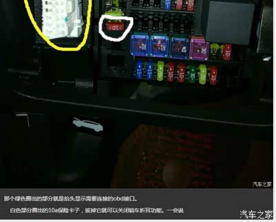 第二:打开主驾驶左下边的控制箱,拔掉那个10A的保险卡子