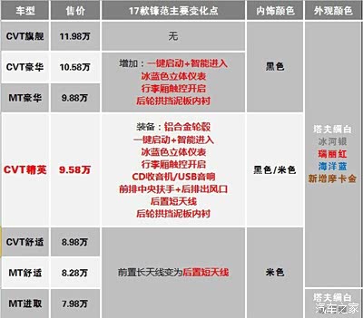 问 15款锋范和17款锋范的区别到底在哪里?自豪版