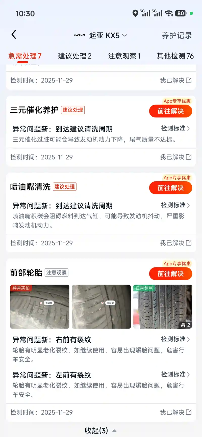 问 请问我的轮胎和刹车片需要换吗?害怕