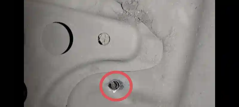 问 底盘这个位置被钢筋戳穿了有影响吗?