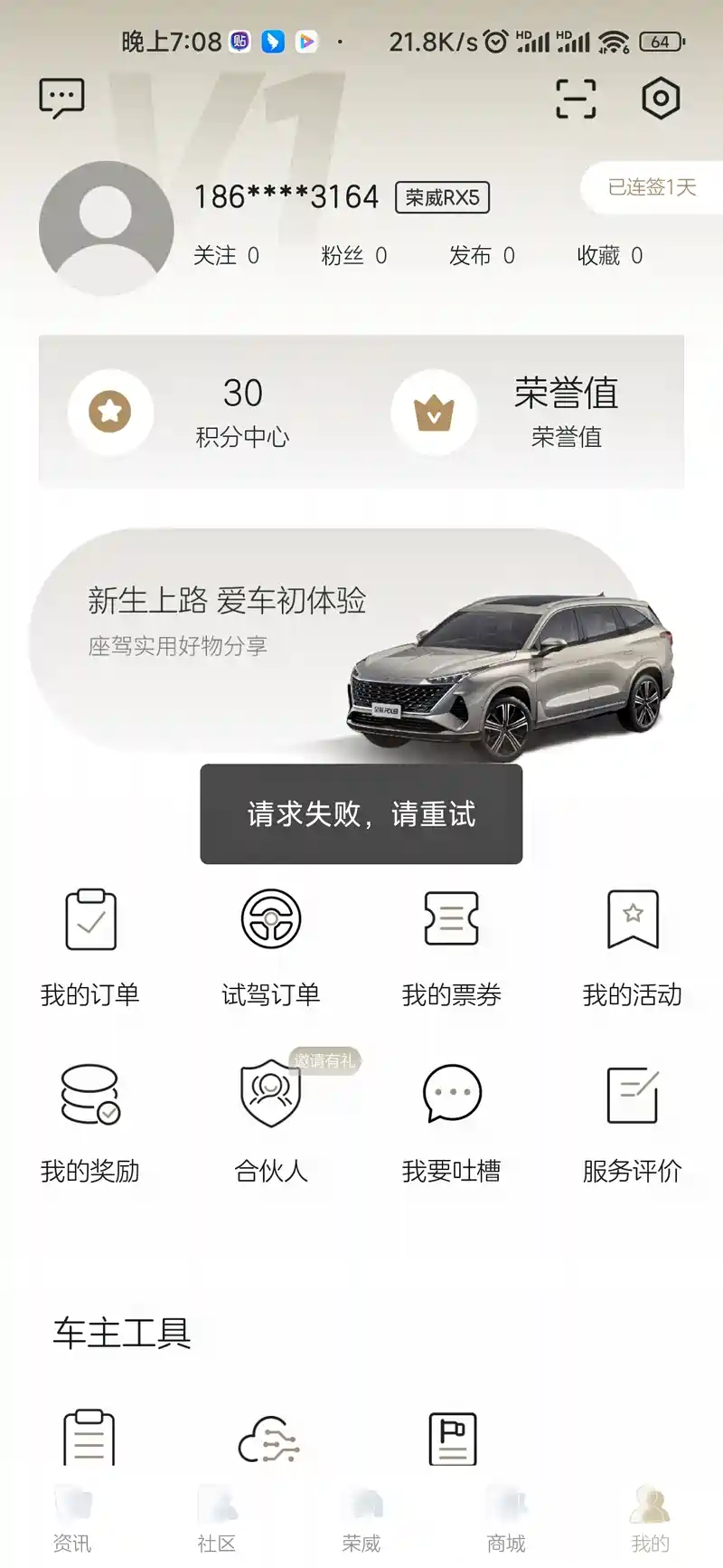 问 上汽荣威app请求失败,请重试 删除 推荐精华 置顶 取消置顶 关闭回复 打开回复 推荐编辑 楼主禁言 移动帖子 重置头像 操作记录 米虾的桃子 0浏览 · 2023-05-11 20:06· 发布于江西 上汽荣威app请求失败,请重试,如图所示,连不到车,不能远程控制,怎么解决呀? 举报 打开汽车之家 阅读体验更好 相关问题 更多 问最终还是变色了 0回答 问手机解锁为什么不可用 0回答 问车载K歌 0回答 问高速导航不稳定 0回答 问用什么型号机油好呢? 0回答 问这车有eco模式吗? 0回答 全部回复 只看楼主 重庆车友0575148 关禁闭 已屏蔽 检查车是否在地下车库或车机没流量 2023-05-11 20:51 来自重庆 回复 沙发 屏蔽此人 举报 删除 取消删除 禁言 重置头像 共有条对话 > 湖北荣威鄂荣会 关禁闭 已屏蔽 荣威RX5 你是荆州还是江西 2023-05-16 02:11 来自湖北 回复 板凳 屏蔽此人 举报 删除 取消删除 禁言 重置头像 共有条对话 > 牛肉炖土豆 关禁闭 已屏蔽 荣威RX5新能源 停车的地方没网络停信号 2023-06-01 15:01 来自上海 回复 地板 屏蔽此人 举报 删除 取消删除 禁言 重置头像 共有条对话 > 还想在主楼增加内容?点击续写主楼内容 登录 参与更多互动 发表回复 打开App,查看更多评论 首 页 上一页 下一页 末 页 跳 转 取 消 还想在主楼增加内容?点击续写主楼内容 登录 参与更多互动 系统故障 发表回复 图片最多上传9张 微信好友 微信朋友圈 新浪微博 QQ好友 QQ空间 取消 相关推荐 加载中