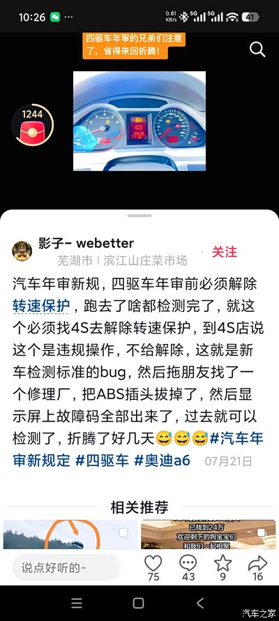 问 求助:柯迪亚克转速保护 过不了车检(2019 380旗舰版 6年 )