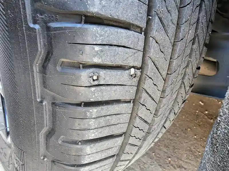 前几天轮胎不小心被扎了个钉子,当时随便找了一家街边补胎店补了,结果补成了这个样子,一个洞补成两个洞,大家看看这胎还能用吗?